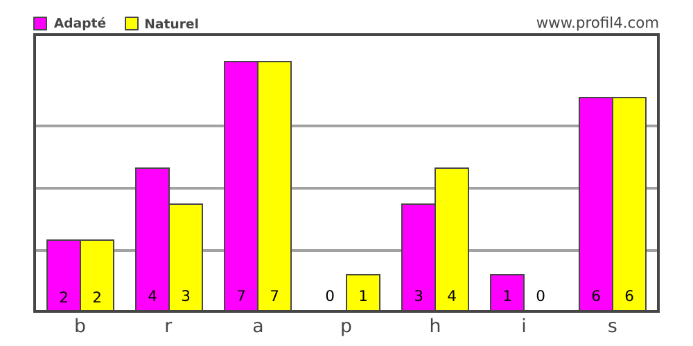 Tout comme le modèle DISCp4, l'indice BRAPHISp4 distingue un profil Adapté et un profil Naturel. Dans le cadre spécifique des motivations, le profil Adapté correspond aux motivations que les individus mettent en avant. Le profil Naturel est plus représentatif des motivations qui guident réellement leurs pas.
