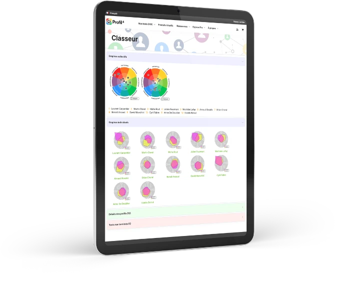 De la découverte des styles de personnalité à la lecture fine des dynamiques d’équipe, Profil4 permet de centraliser les tests, visualiser les résultats et analyser les interactions, simplement et rapidement.